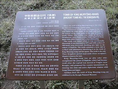 武寧王は5世紀初めに20余年(在位502(501年説も。)〜523)在位したが、この間高句麗の侵略をくい止め、