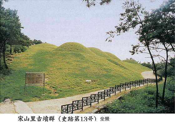 掘古墳で、見事な文様磚(せん:レンガ)作りの石室・豊富な副葬品・墓誌の出土で有名になった。宋山里古墳群には壁画古