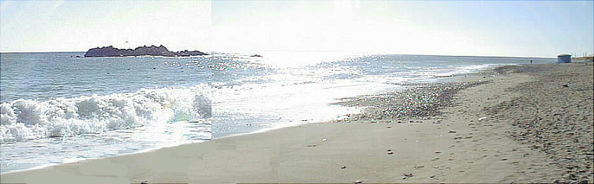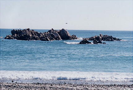 岸からすぐの所に見えている。泳げばすぐ着きそうな位置にあるが、実際泳いだら案外遠いのかもしれない。海岸の様子は