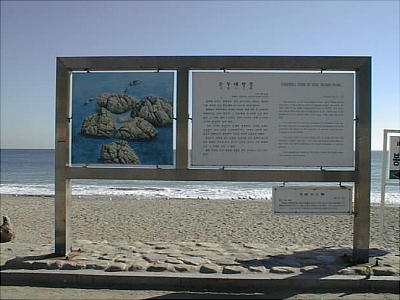 は、例によって、単なる説話との考えが支配的だったが、1959年、海岸から2kmの所にある感恩寺址の発掘で基壇の下に特殊
