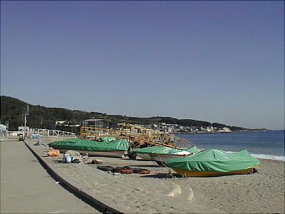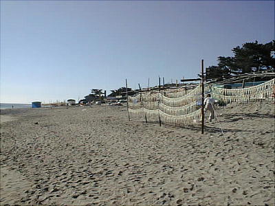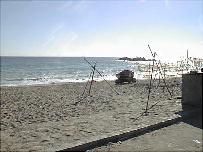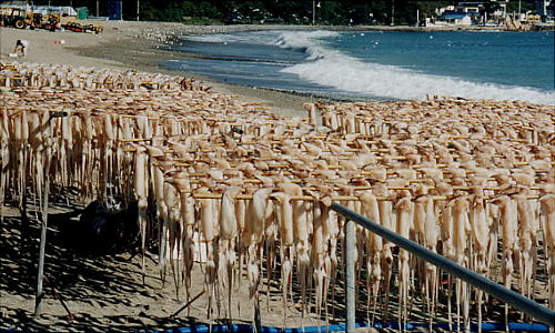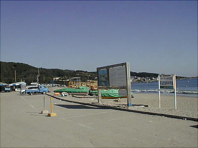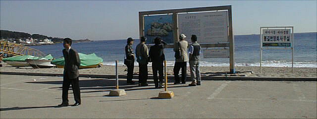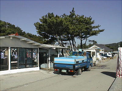 日本の海岸と同じである。船や網が置かれ、小さな魚やイカが干してある。土産物屋や食堂も並んでいて、文武王観光地だ