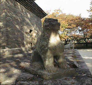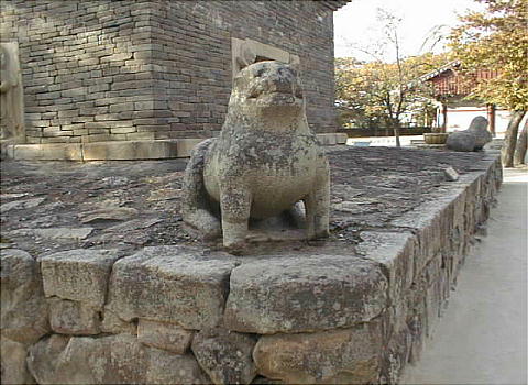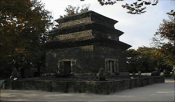 改造したものとみられる。基壇の四隅には石の獅子が配置され、石塔の最初の層には四面の中央に厨子が設けられ、内部