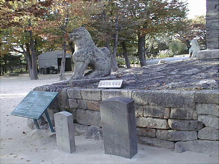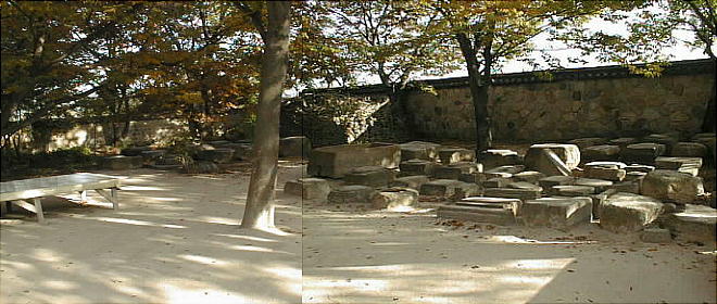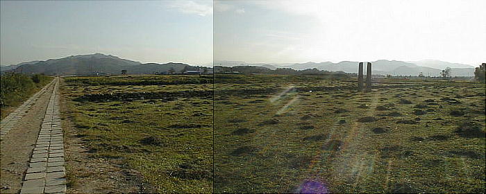 いたところだ。その跡を示す石柱が2本、暮れゆく韓半島南部の夕日に映えてすっくと立っている。