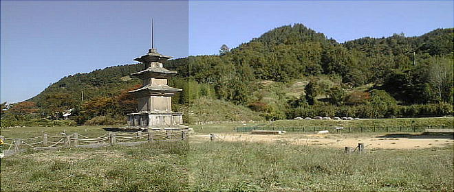なっている、いわゆる双塔式伽藍で、統一新羅時代の寺院の典型的な伽藍配置をとっている寺院である。日本では
