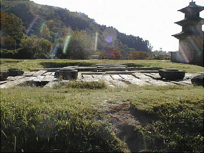文武大王の海中陵から2km程入った所に感恩寺跡がある。これは文武大王が建立し始めたが果たさず、息子の神文王