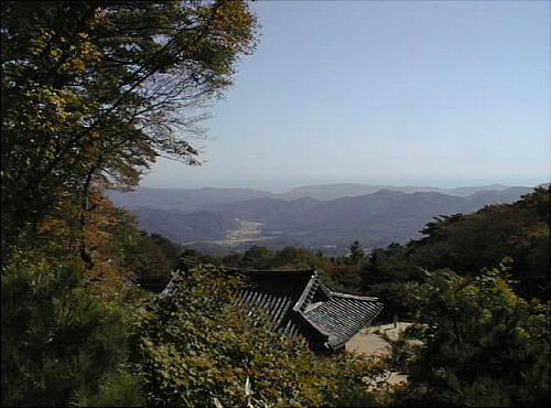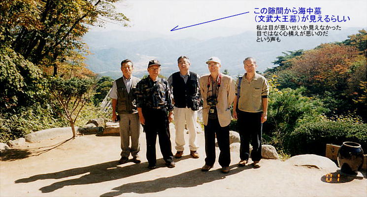 礼拝所前の小さな広場にたつと、彼方の山々の切れ間に文武大王の海中陵が覗いているらしいが、私は目が悪く切れ間は見