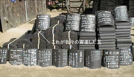 石窟を降りてきた所で、日本の寺院と同様に寄進のための瓦を販売していた。私は似顔絵が少し得意なので、みんなが全員