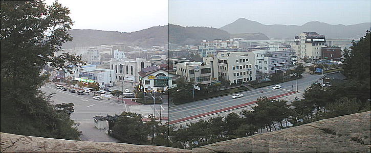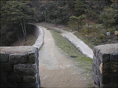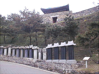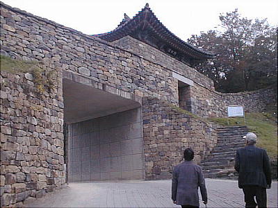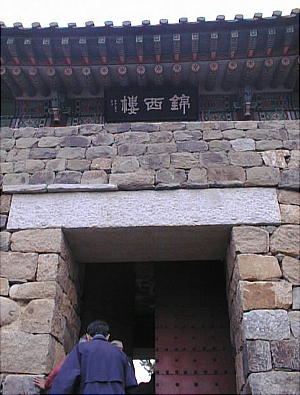 公山城址へ上る。ちょっとした山を一登りして城壁の門をくぐる。もとは土累だった城壁は李王朝時代に石累に改築された。頂上の