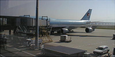 出発前、関西国際空港にて。右は我々の乗った大韓航空(Korea Airline)機。