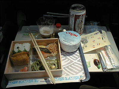 昨年のJALでは何も出なかったが、今回は行き帰りに食事が出た。たった30分の違いなのに。