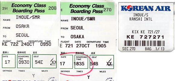 2002年10月24日(木曜) 10:00発韓国仁川()空港行き大韓航空722便