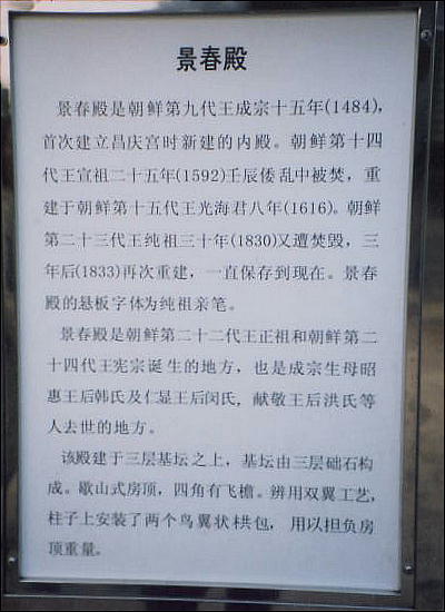 1484(成宗15年)、明政殿、文政殿、通明殿などの王宮を増築し「昌慶宮」と名を改めた。