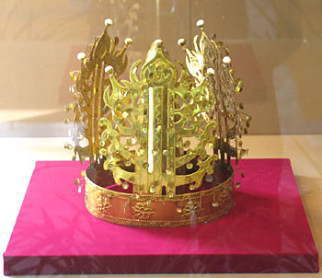 1917年藩南面新村里9号墳(上・下)から出土した5〜6世紀の金銅冠(レプリカ、本物はソウルの中央博物館)
