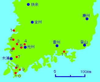 6 咸平長鼓山古墳 7 チャラボン古墳 8 龍頭里古墳 9 海南長鼓山古墳 10 造山古墳