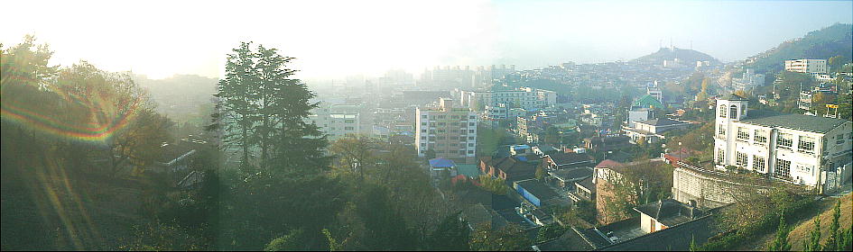 儒達山から眺める木浦市街。「日本の町ににてるでしょ。」と朴さん。