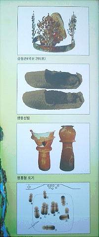 年に発掘調査された徳山里9号墳からは12基の甕棺と金剛冠(国宝第295号)、金銅靴。金指輪、土器などが出土