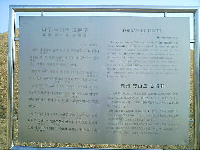 埴輪が出土しており日本との深い関係が窺える。昨日の多侍面・伏岩里古墳に続き、今日は、藩南面・徳山里古墳群と
