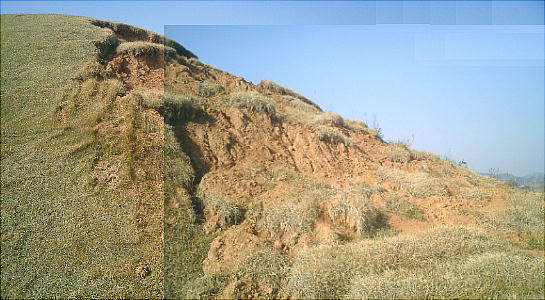 なんか変な形の古墳やなと思って近づくと、古墳の一部が地滑りを起こしていた。こんなのは始めて見た。