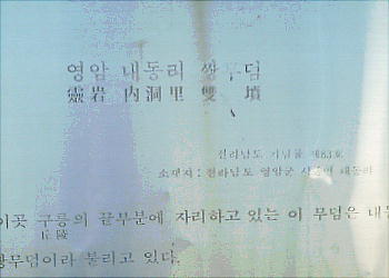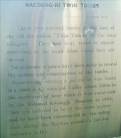 地は風水思想で「梅の花の落ちる所」といわれ縁起のよい地とされている。双墓は馬韓時代の支配階級の墓と考えら