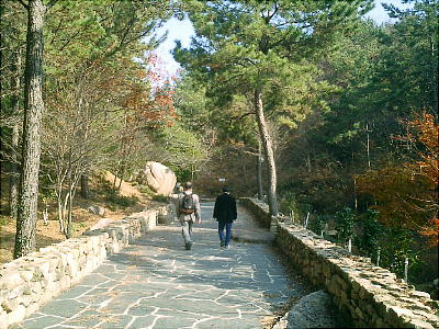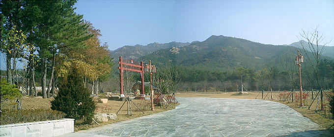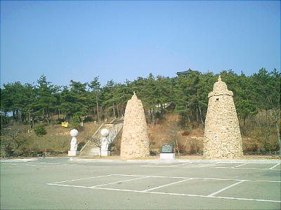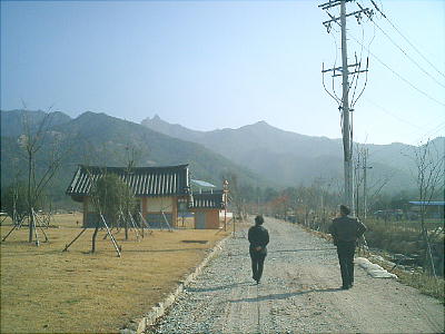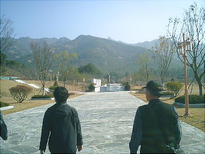 バスは一路霊岩へと向かい、月出山麓の「王仁博士」生誕地を訪ねる。王仁廟へ向かうマイクロバスの中から眺める