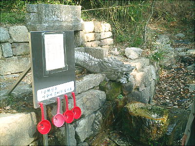 博士が呑んだとされる聖泉と、そこから流れる小川。(また、名前を忘れた。最近もの忘れが多いなぁ。)
