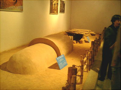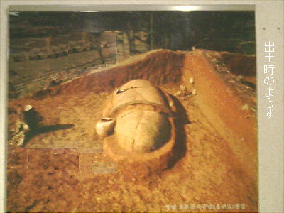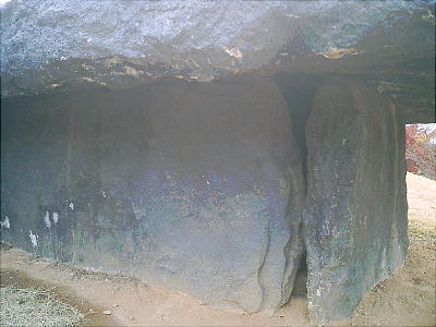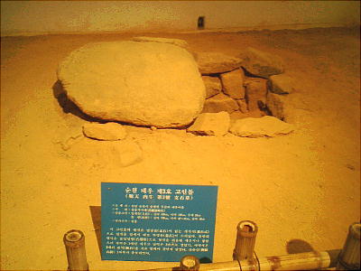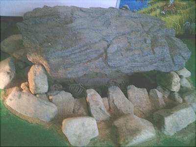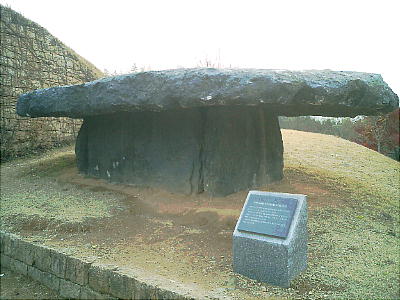 デカイ箱式石棺の上にも石を置いている。墓制館の前においてあるレプリカ。これも北の方のコインドルだ。