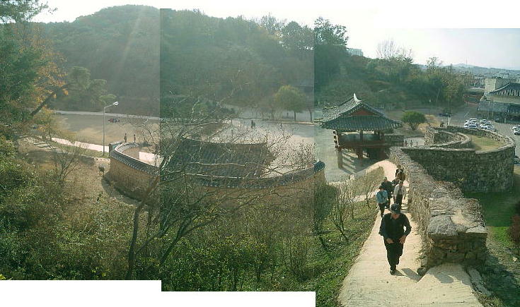ここもなかなかたいした城(城壁)である。日本では城にはいるのは侍達だけだが、ここ韓国ではヨーロッパ同様に、