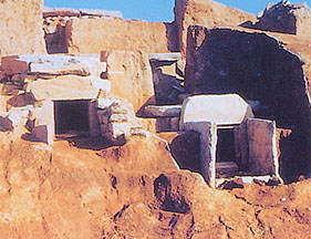 上、アパート型複合古墳。平坦な墳上の下には、独特の多層墳墓群があった。(羅州市庁文化公報担当室パンフレット