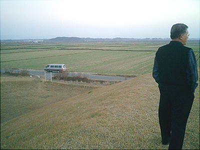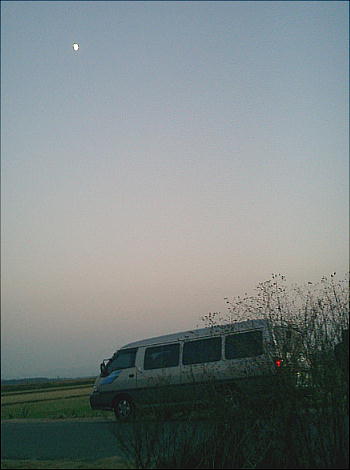 夕暮れの古墳から見た月。ここから2時間あまり掛けて木浦へ向かう。