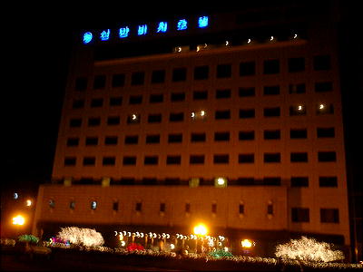 食事の後到着した「新安ビーチホテル」。イルミネーションが綺麗だった。