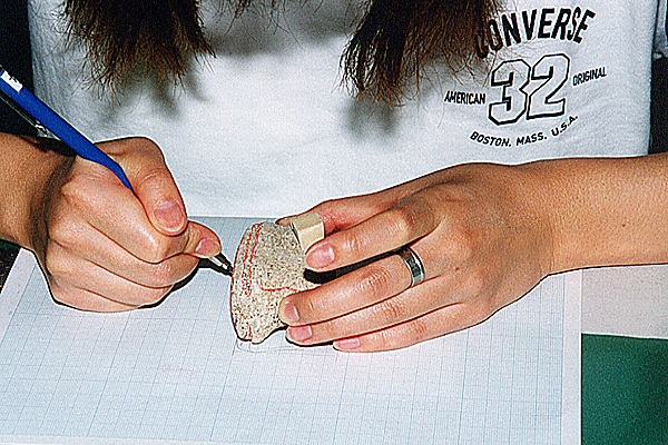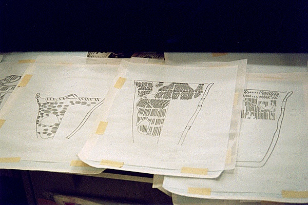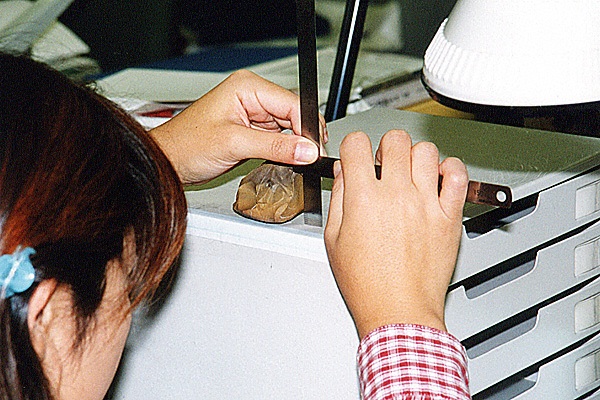 資料館の入口(出口?)に作業部屋があり、中の作業がガラス越しに見えるようになっている。トレースや張り合わせや、