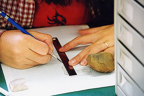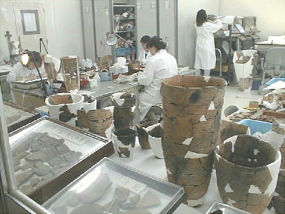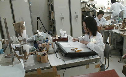 各種整理作業に従事しているのは、白衣を着た若い女性ばかりである。彼女らの手になる復元物が、やがて又たくさんの見