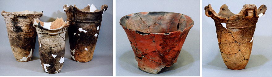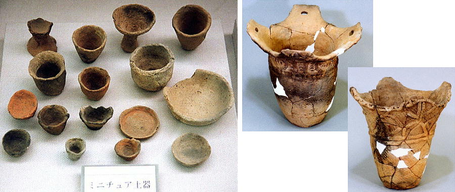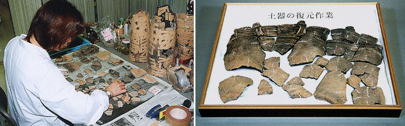 土器も夥しい数で出土している。現在も復元作業中のものもたくさんある。全国的にも珍しい漆塗りの土器も出土した。