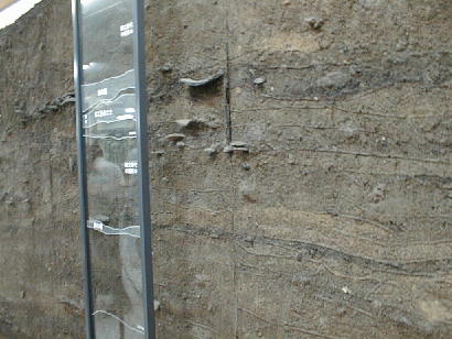 下左は丸木船の遺跡写真。こんなものでクジラを追っかけていたのだろうか。下右は三内丸山遺跡地層の断面。