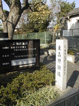 四条畷と言えば「楠(くすのき)」である。博物館の入り口にも大きな楠が立っていて、「東高野道」の道標とともに訪問