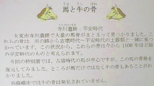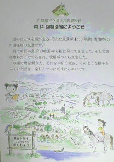 今から1500年前の古墳時代中頃の様子をとりあげました。当時の四条畷市は馬を飼う村でした。朝鮮半島から馬を連れてき