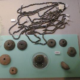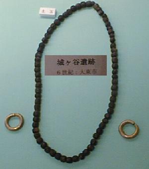 四条畷市の各遺跡から見つかった装飾品。ガラスのビーズや金装のイヤリングは渡来人が持ってきたものか、日本で製造さ