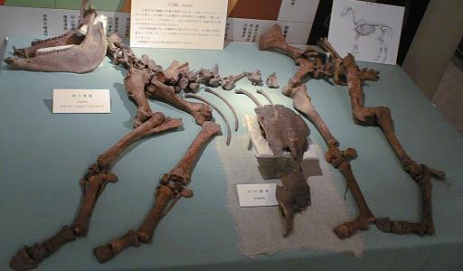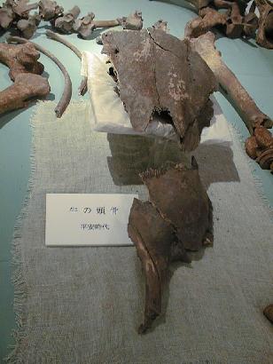 下左は馬の顎の骨。右は馬の歯
