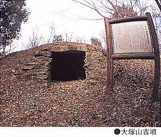 大塚古墳から1km程南下した所の、寺背後の斜面墳丘にある径 10m の円墳。南側に石室が開口し羨道は殆ど無くなってい