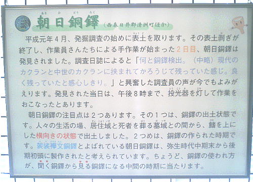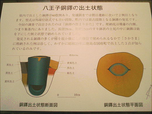 湯廻りが悪いために紋様が不鮮明。弥生時代中期末から後期にかけての頃製作されたと考えられている。「鳴らす」銅鐸から