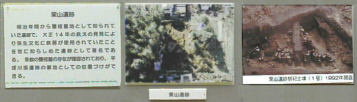 「池の上・古寺墳墓群」は古墳時代初期の墳墓群で、現在の甘木中学校が移転された際、その工事中に発見された。