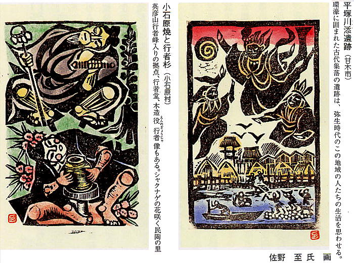 以下の版画は、甘木朝倉の中学校で長いこと美術の先生をやっておられた佐野至先生の手になるもの。資料館の壁に飾ってある。私は
