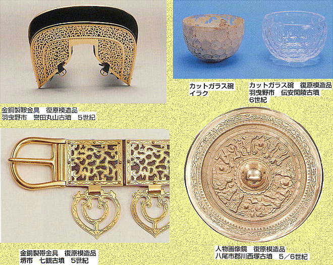 銅鏡(4世紀)、須恵器(5世紀)、馬具(6世紀)ほか