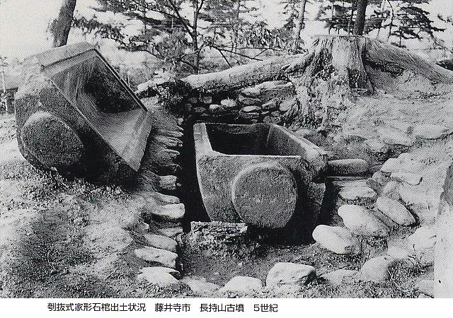 をあけたもの。この場合、天井や壁だけでなく床石も存在する。この横口式石槨の出現とともに古墳は終焉を迎える。こ