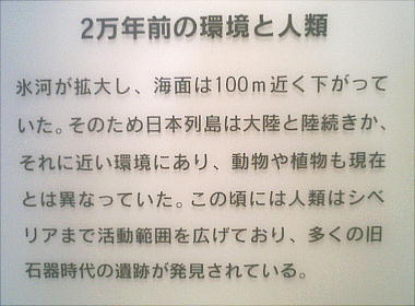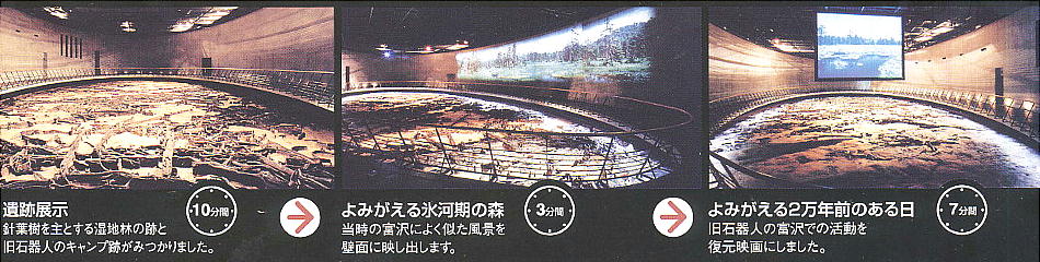 この博物館では,実際に発掘された遺跡をそのまま見ることができるほか,厳選された資料を用いて,2万年前の遺跡周辺の