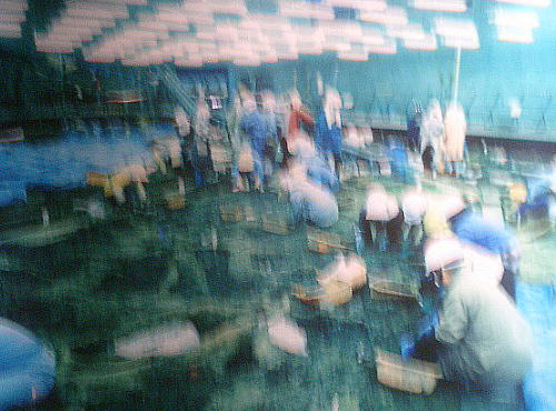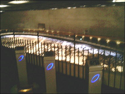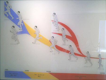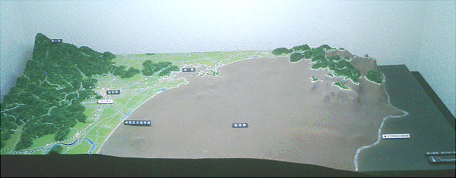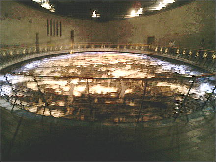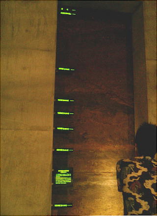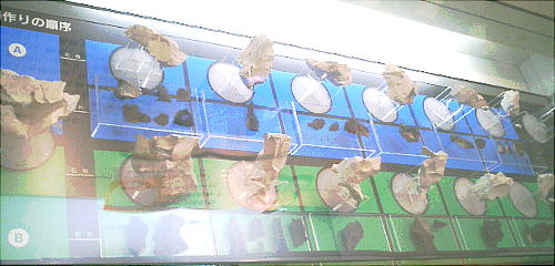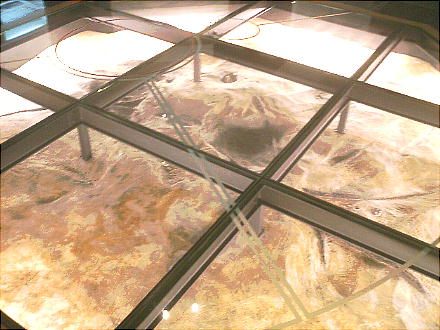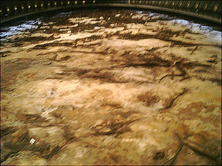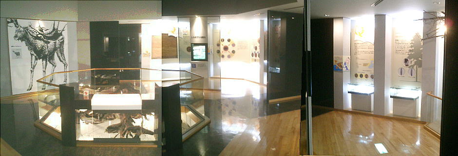 は、発掘された面を回廊が1周し、照明はほの暗く、BGMも流れている。決まった時間に、壁にスライド映写と、スクリ