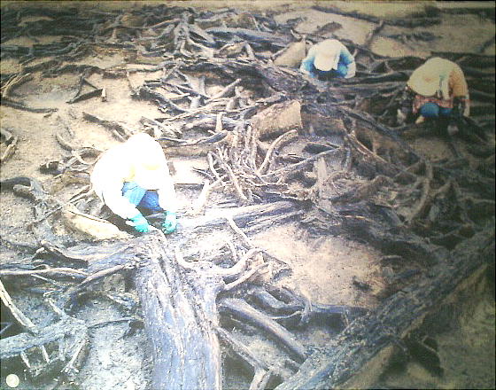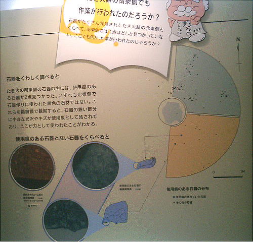 である、しかもこの遺跡は旧石器人の焚き火の跡が残っているのだ。2万年前の旧石器人の生活の痕跡! 藤村新一によっ
