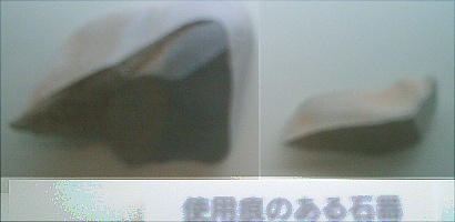 旧石器人のたき火の跡と石器を作っていた痕跡(上)。