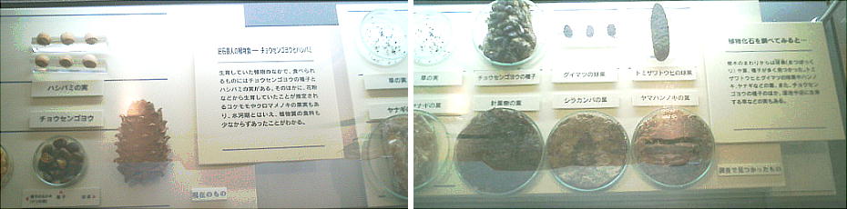 まま,展示。また,球果・葉・種子などの植物化石・動物のフンの化石等を収蔵。