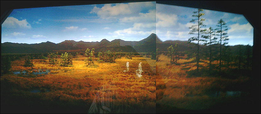 ーンにビデオ映像の投影が行われる。地上階は展示室や研修室などがあり、ガラス窓からは、外の旧石器時代の森林風景を